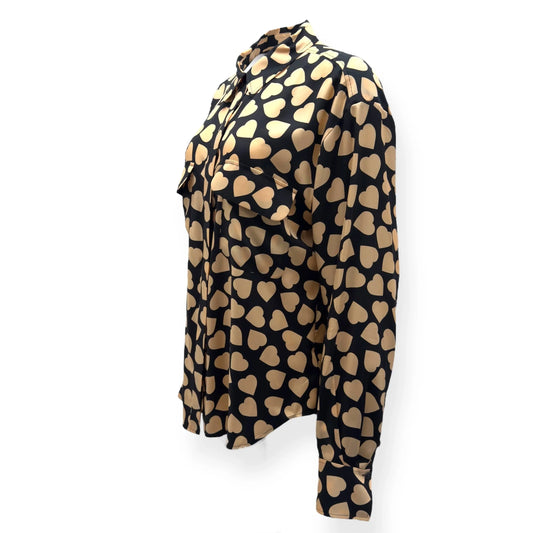 EQUIPMENT MELANNI HEART-PRINT SATIN-JERSEY SHIRT BLOUSE BLACK XL