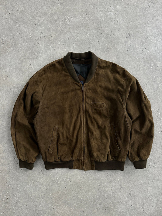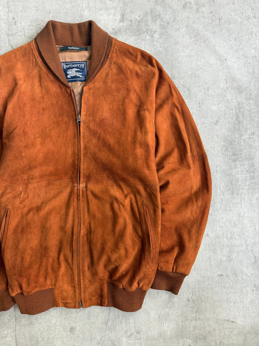 Burberry Brown Suede Leather Full Zip Bomber Jacket