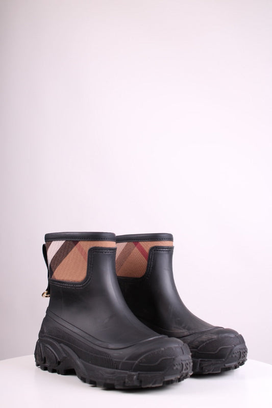 Burberry Check Ankle Rain Boot Black/ Tan 36