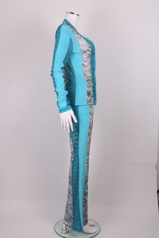 Missoni Zig Zag Cardigan/ Trouser Co-ord Blue/ White M