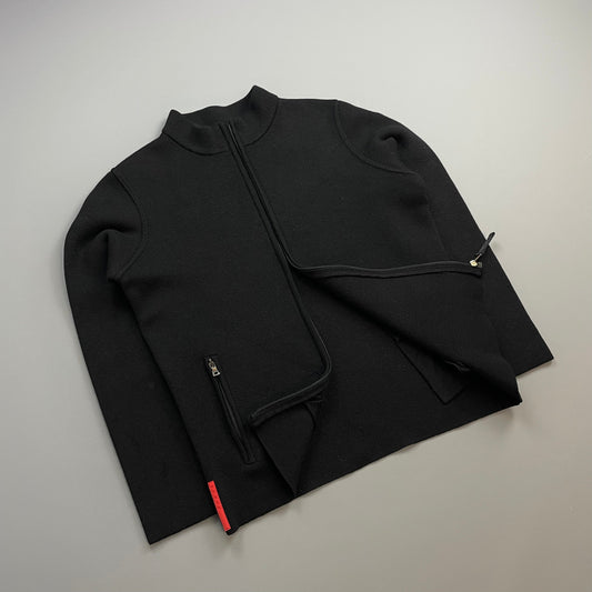 Prada Sport Black 2007 Wool Knit Zip-Through Cardigan Jacket
