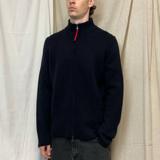 Prada Sport Navy 00s Wool Zip-Through Knit Cardigan