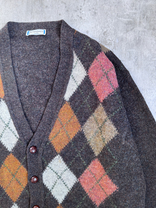 Yves Saint Laurent Tricot Argyle Knit Cardigan