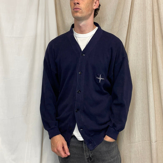 Stone Island Navy 90s Compass Emblem Button-Up Cardigan