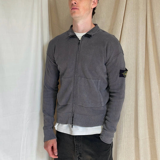 Stone Island Grey SS06 Cotton Knit Zip-Through Cardigan Jacket