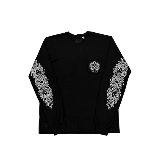 Chrome Hearts Paris Exclusive Floral Horseshoe Scroll Logo Long Sleeve T-Shirt