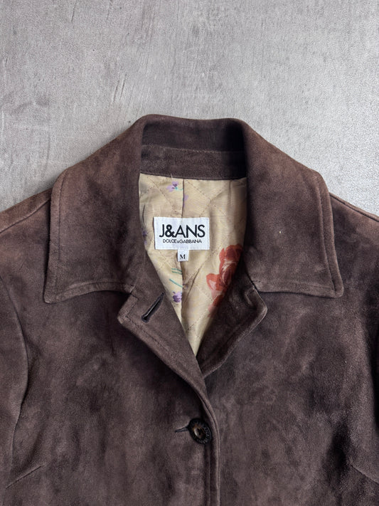 D&G Jeans Brown Suede Button Down Floral Quilt Lined Jacket