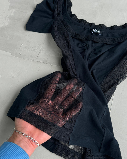 DOLCE AND GABBANA D&G LACE AND RUFFLE SLEEVE TOP - S
