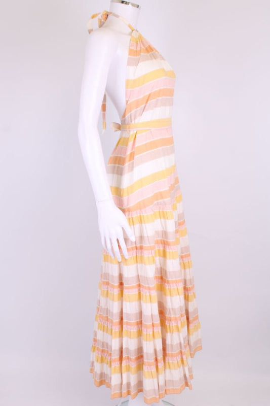 Zimmermann Halter Neck Stripe Dress Yellow/ White S
