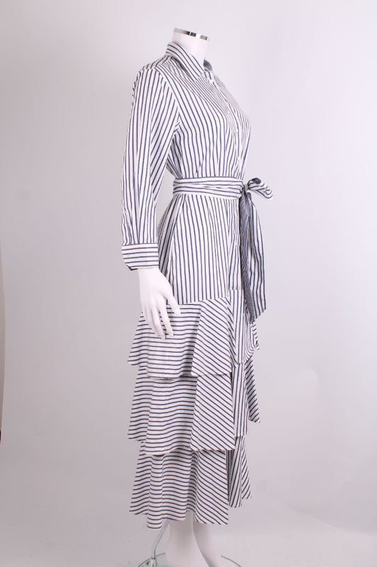 Sara Roka L/S Stripe Dress White/ Navy 12