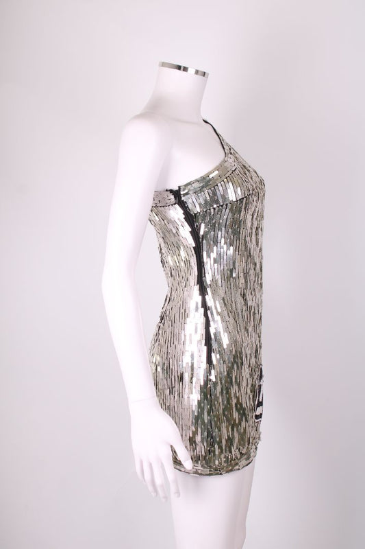 Off-White Silver Sequin One Shoulder Dress Silver XS