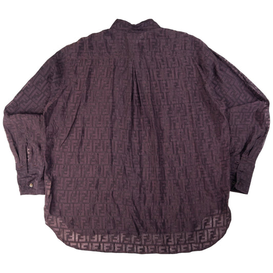 Vintage Fendi Roma Monogram Sheer Long Sleeve Buttom Up Shirt Size XL