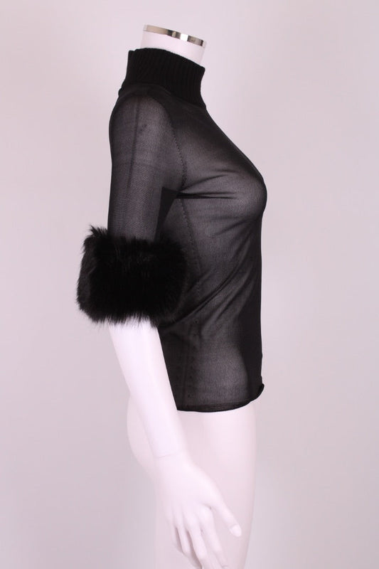 Saint Laurent Sheer Faux Fur Cuff Top Black S