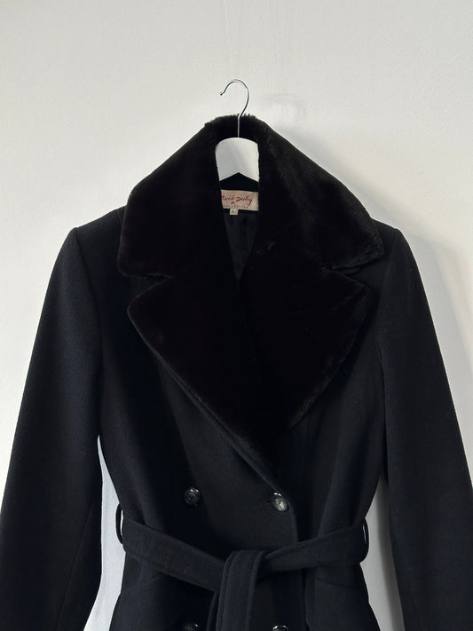 Vintage Wool Belted Removable Faux Fur Collar Coat - M/L