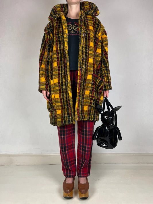 Junior Gaultier F/W 1991 tartan faux fur coat