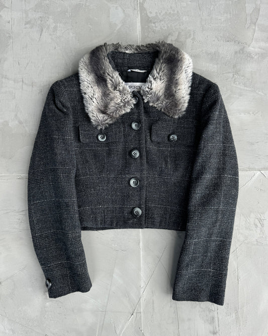 SPORTMAX 90'S WOOL & FAUX FUR CROPPED JACKET - M