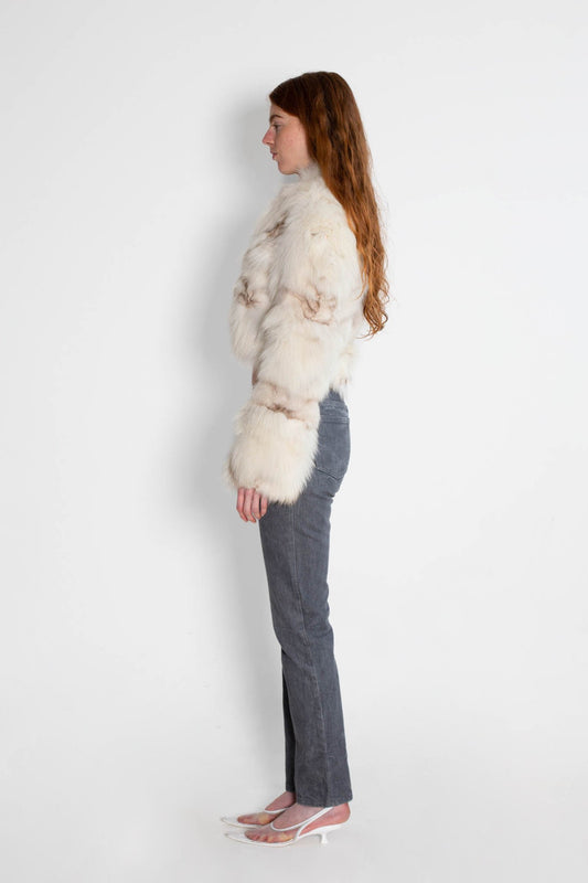 Moschino Jeans 00’s Rabbit Fur Collar Cropped Furry Jacket - UK8-12