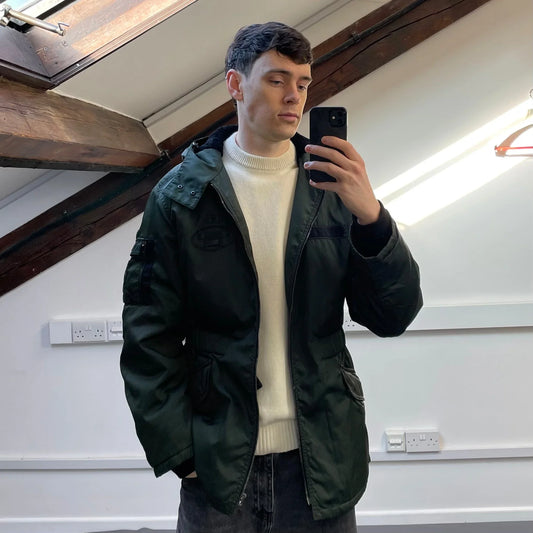Prada Milano Green 2006 Nylon Sheep Fur Ski-Style Utility Hooded Jacket