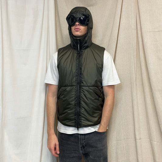 C.P. Company Khaki Green Nada Shell Primaloft Hooded Goggle Nylon Gilet Vest