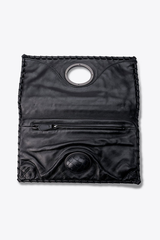 Vintage Bottega Veneta Black Intrecciato Leather Clutch Bag