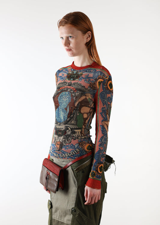 JEAN PAUL GAULTIER ANGEL PRINT LONG SLEEVE MESH TOP