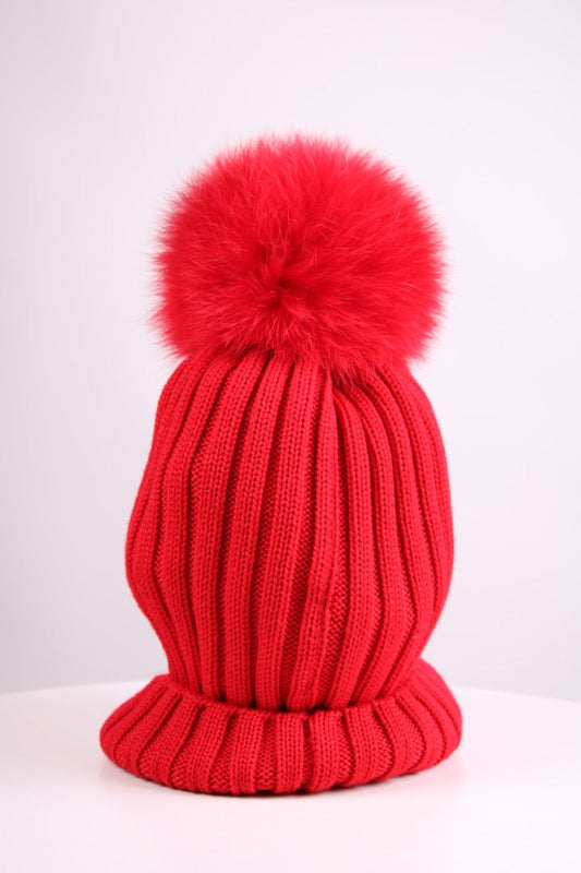 Moncler Knitted Bobble Hat Red S
