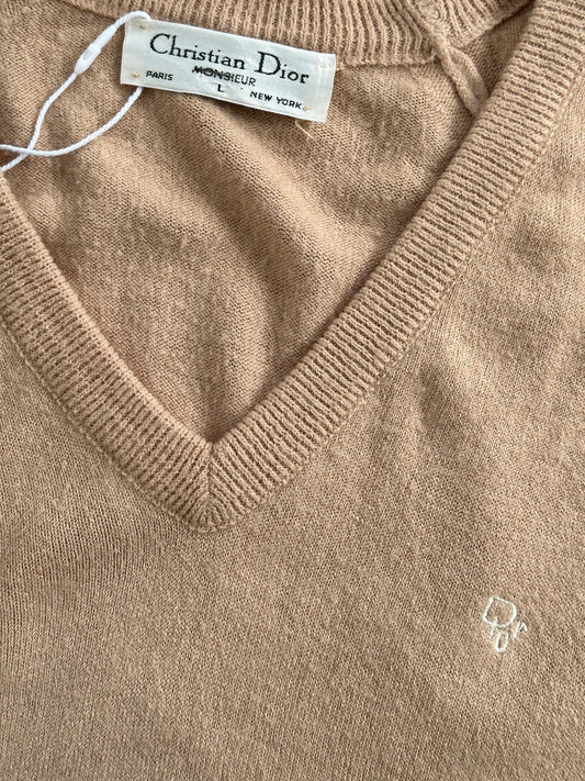 Christian Dior 1980s V Neck Logo Knitted Jumper - L/XL