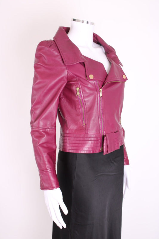 Red Valentino Puff Shoulder Leather Jacket Plum S