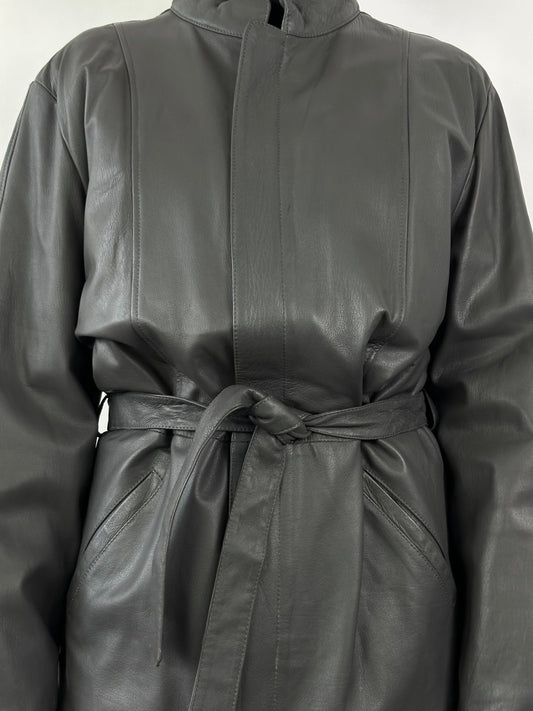 Vintage Double Breasted Belted Smooth Leather Jacket - L/XL