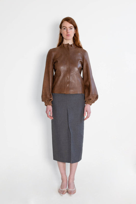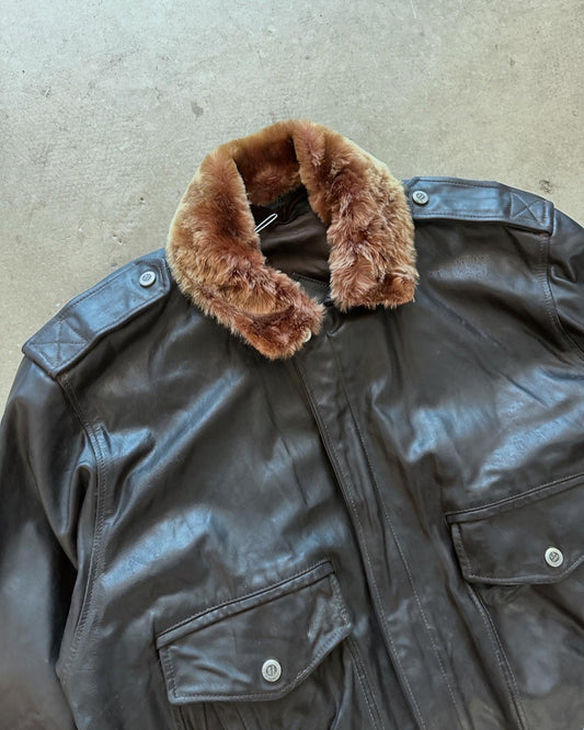 Vintage High Neck Smooth Leather Jacket - L/XL
