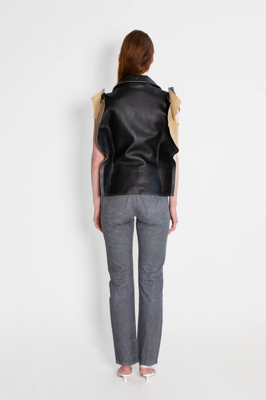 Vintage Structured Motorcycle Leather Jacket - L/XL