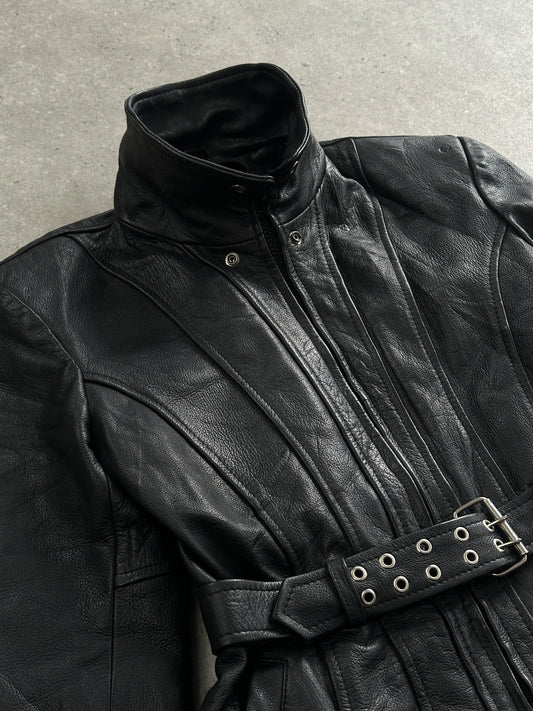 Vintage 1990s High Neck Belted Leather Jacket - M