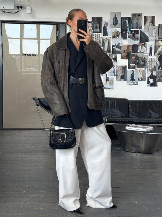 Vintage 1980s Aged Boxy Leather Jacket - XL