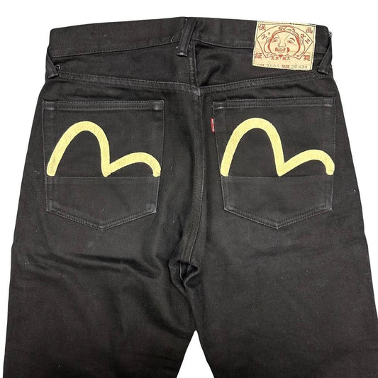 Evisu Selvedge Black Jeans With Double White Daicocks ( W30 )