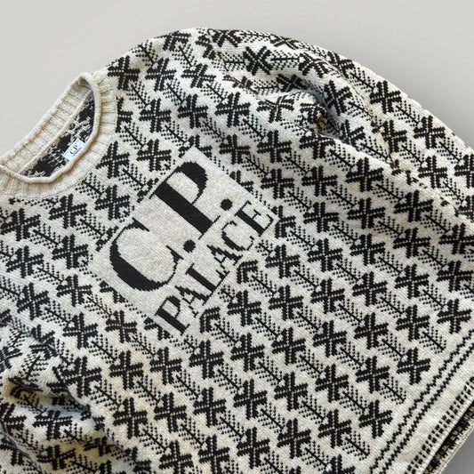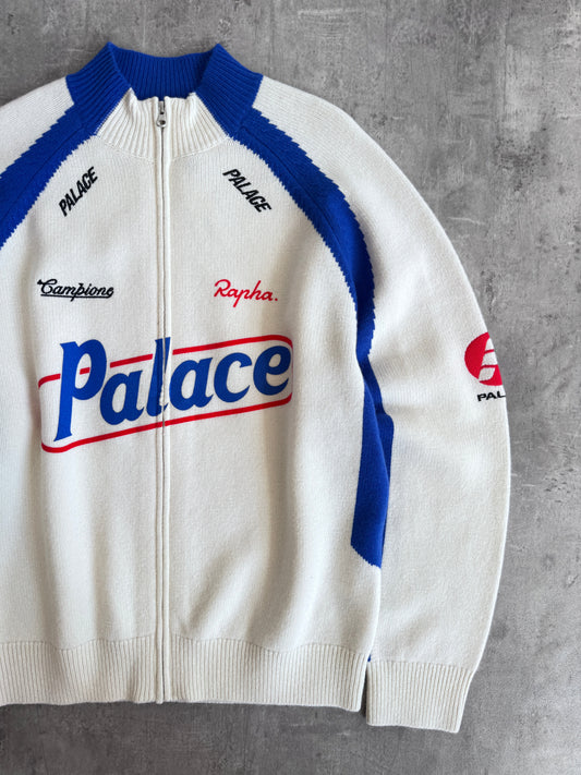 Palace x Rapha Beige Embroidered Spellout Zip Knit Sweater