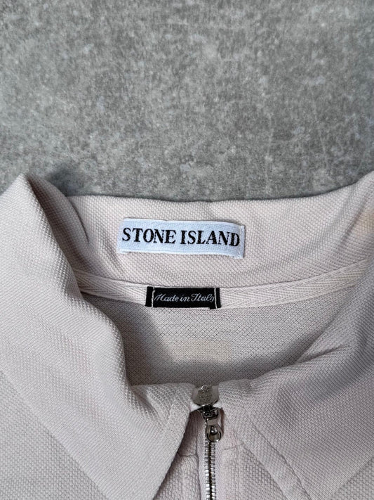 90s Stone Island Beige Quarter Zip Polo Shirt