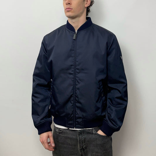 Prada Mainline Navy & Black 2017 Nylon Padded Plaque Bomber Jacket