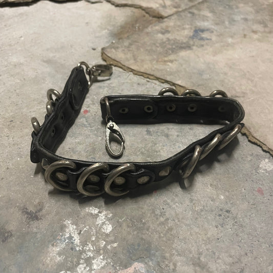 Kmrii Black Leather Metal Ringlet Wallet Chain
