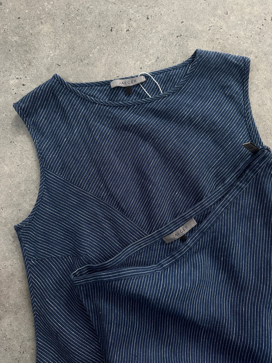 Jaeger Pure Linen Stripe Two Piece Skirt Top Set - M/W28