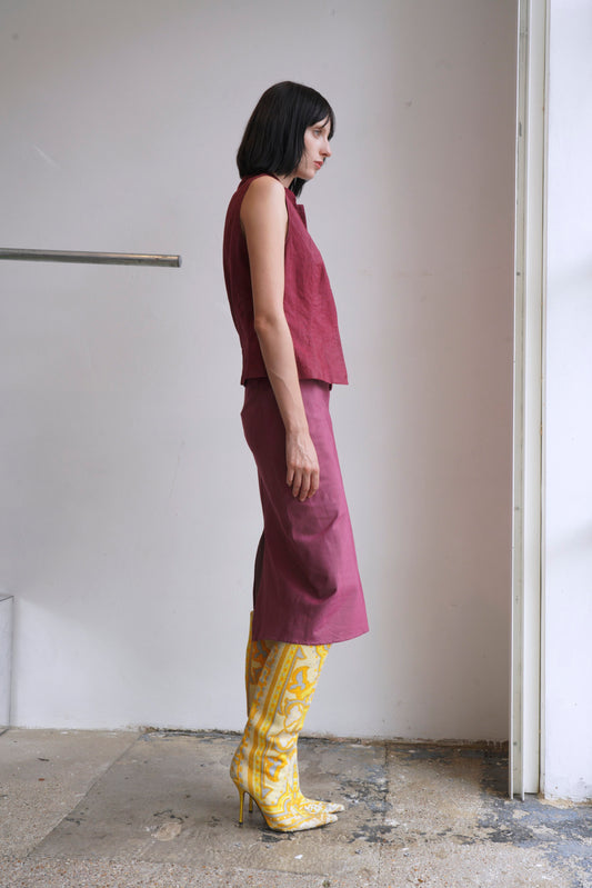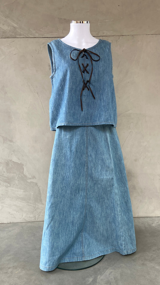 MIU MIU DENIM MAXI SKIRT & LACE UP TOP SET - M