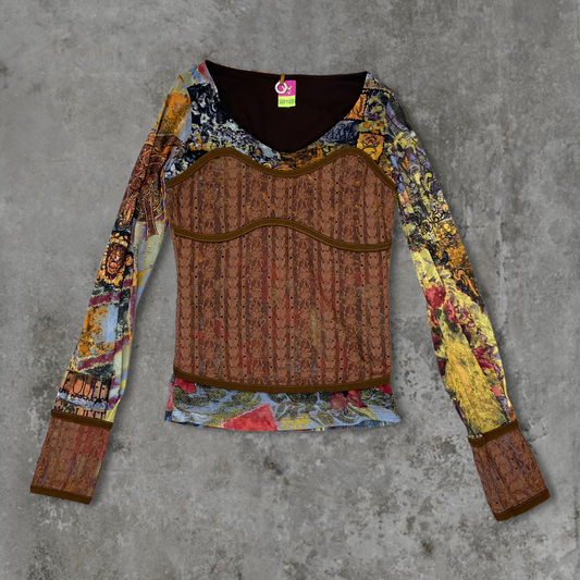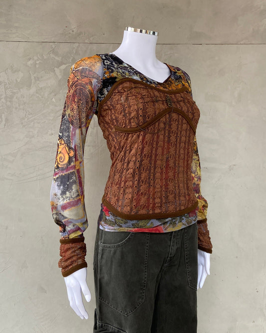 SAVE THE QUEEN CORSET LACE MESH TOP - M/L