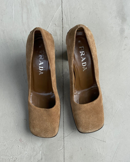 PRADA FW99 METAL HARDWEAR SUEDE BLOCK HEELS - EU 35.5 / UK 3