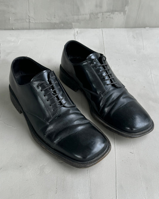 PRADA BLACK LEATHER SQUARE TOE DERBY SHOES - UK 8.5