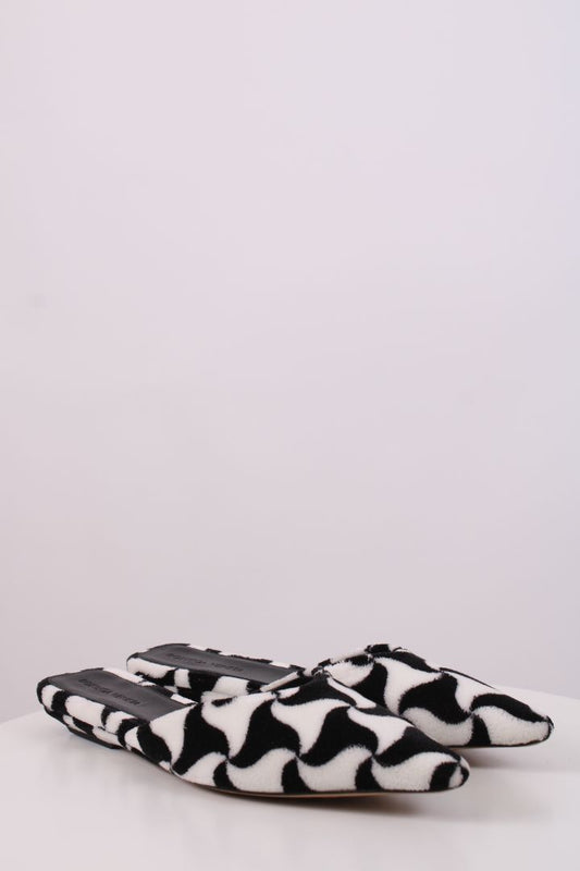 Bottega Veneta Print Pointed Flat Shoes Black/ White 38.5