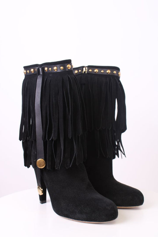 Balenciaga Velvet Pointed Ankle Boots Navy 39