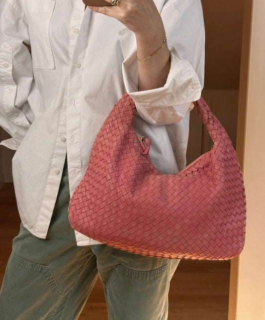Vintage Bottega Veneta Pink Intrecciato Leather Hobo Shoulder Bag