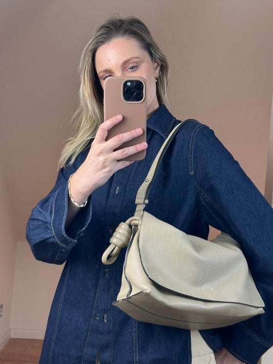 Bottega Veneta Leather Shoulder Bag with Gold Hardware