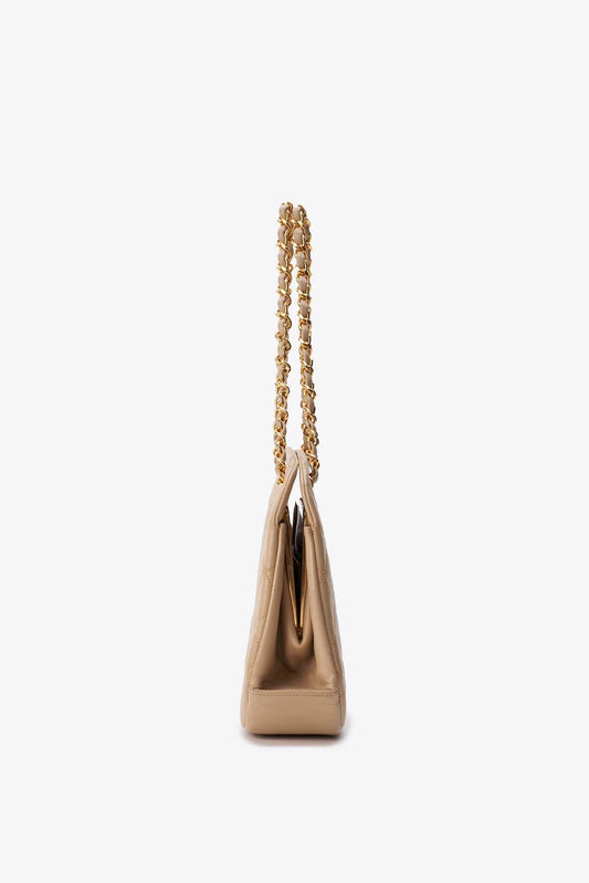 Vintage Chanel Quilted Chain Shoulder Bag in Beige Lambskin
