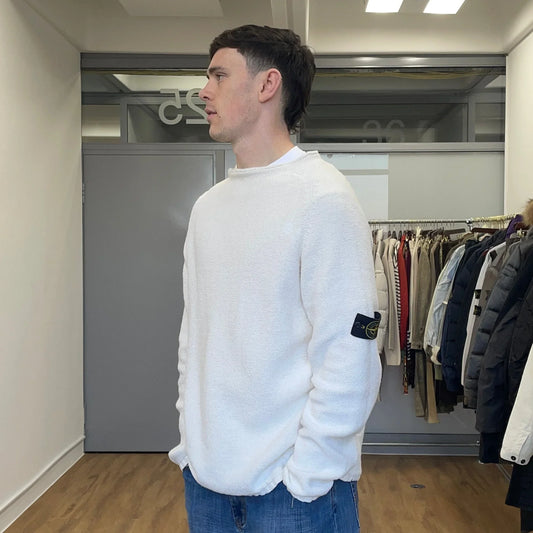 Stone Island AW94 Beige Chenille Knit Jumper w/ Green Edge Badge