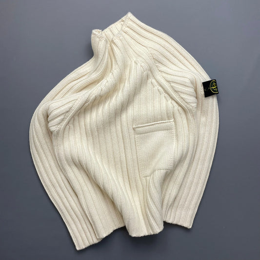 Stone Island Cream Chunky AW18 Mid-Pocket Knit Mockneck Jumper